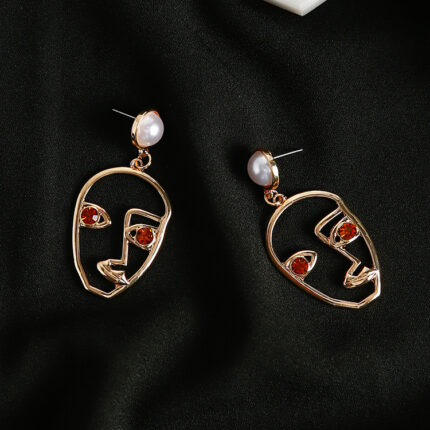 Levant Handmade artistic design exaggerated hollow face contour modeling pearl earrings