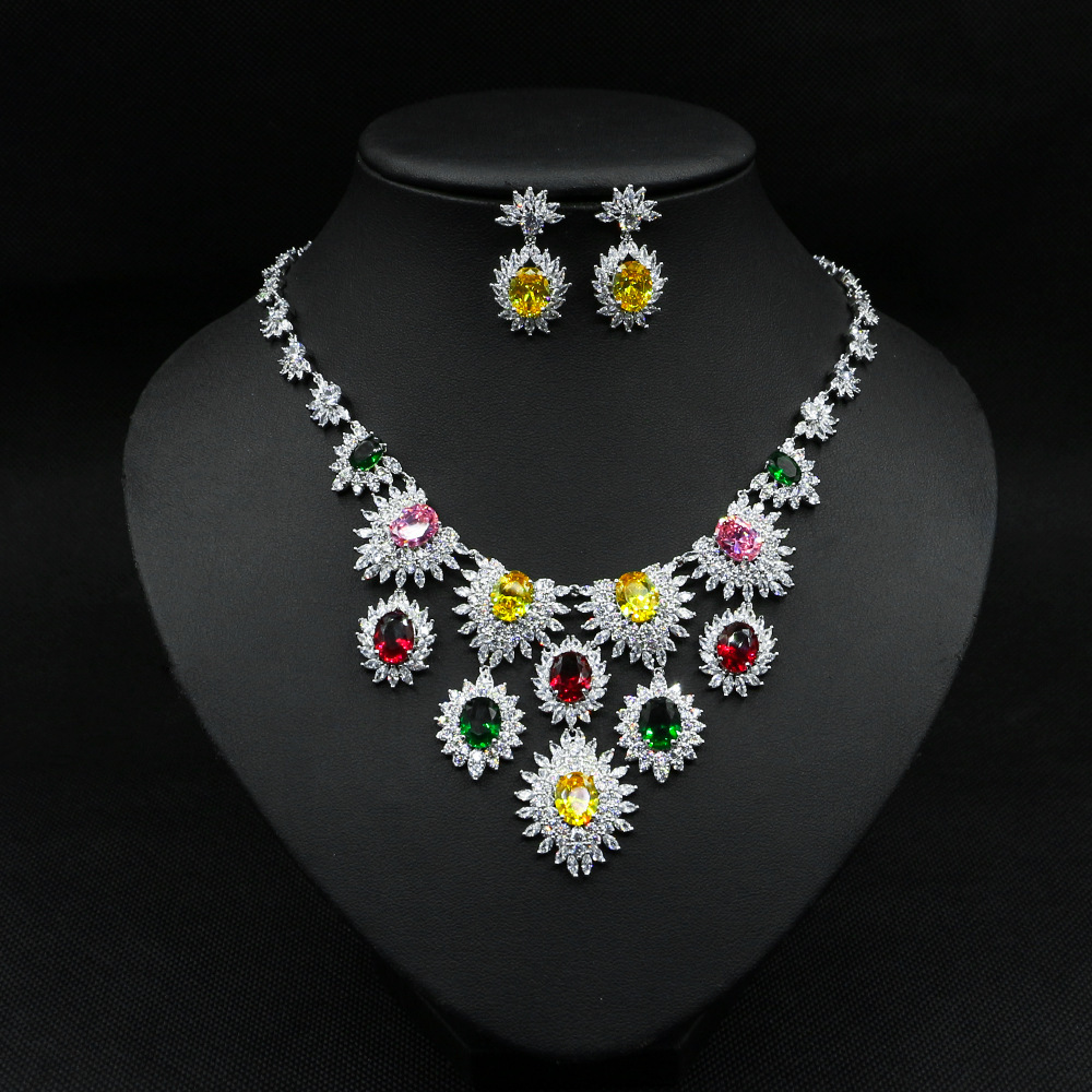 Home Jewelry Levant Jewelry Colorful Zircon Earrings Necklace Set